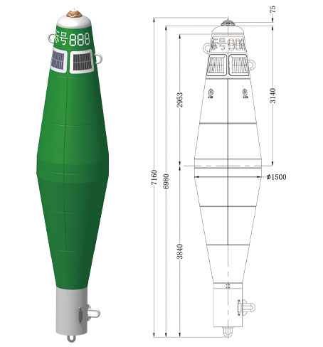 The Narwhal-150C Buoy is primarily composed of a 316L stainless steel framework and a rotationally molded main module. The buoy features a streamlined structure design, with no fastening bolts on the exterior of the buoyant body, achieving a 360° smooth transition. This design provides excellent ice guiding and visual performance, effectively reducing damage during vessel impacts and facilitating easier maintenance. It is a high-performance, low maintenance all-season light buoy.