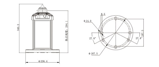 Polycarbonate resins Fixing: 200 mm diameter (4 or 3 bolts - φ14mm). |
