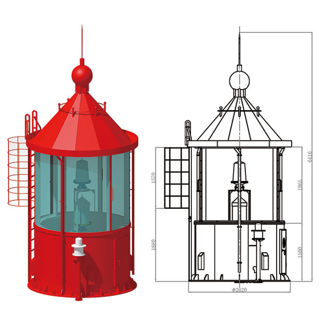 The steel structure parts are connected in multiple stages to form a cylindrical body, and can also be designed and calculated according to user requirements. Depending on the installation site and transportation conditions, the lantern can be delivered as a whole or prefabricated in the factory and assembled (welded) on-site. The lantern base flange and maintenance platform are connected by bolts. The lantern features high strength, corrosion resistance, good stability, easy installation, and simple maintenance. Its appearance is simple and elegant, suitable for various operating conditions and marine areas.