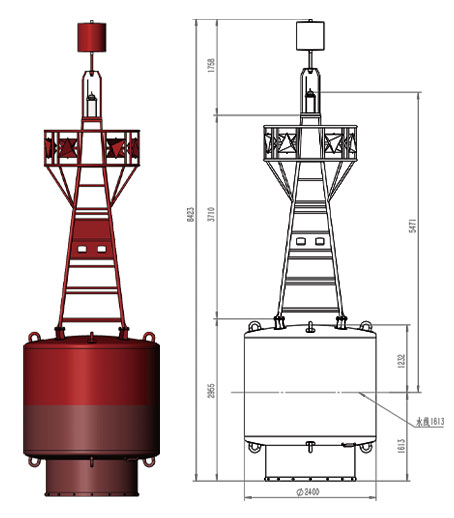 The float body and tail pipe are formed from CCSB shipbuilding structural steel and welded together. The balance weight is made of HT200, which is easy to manufacture and has good corrosion resistance. The light bracket is composed of welded hot-dip galvanized steel pipes, which have good corrosion resistance.