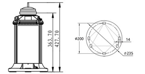 Fixing: 200 mm diameter (4 or 3 bolts - φ14mm).