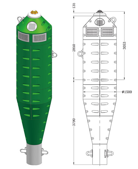 The rotational molding parts are colored inherently, no need for painting, and the buoy production process is green, environmentally friendly, and pollution-free. The overall material of the buoy is highly efficient and environmentally friendly, and can be recycled and reused.