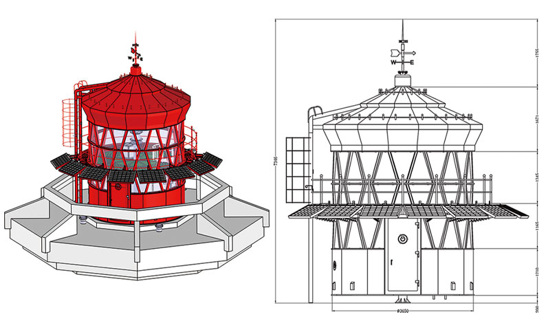 The steel structure parts are connected in multiple stages to form a cylindrical body, and can also be designed and calculated according to user requirements. Depending on the installation site and transportation conditions, the lantern can be delivered as a whole or prefabricated in the factory and assembled (welded) on-site. The lantern base flange and maintenance platform are connected by bolts. The lantern features high strength, corrosion resistance, good stability, easy installation, and simple maintenance. Its appearance is simple and elegant, suitable for various operating conditions and marine areas.