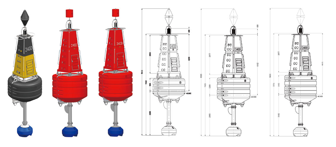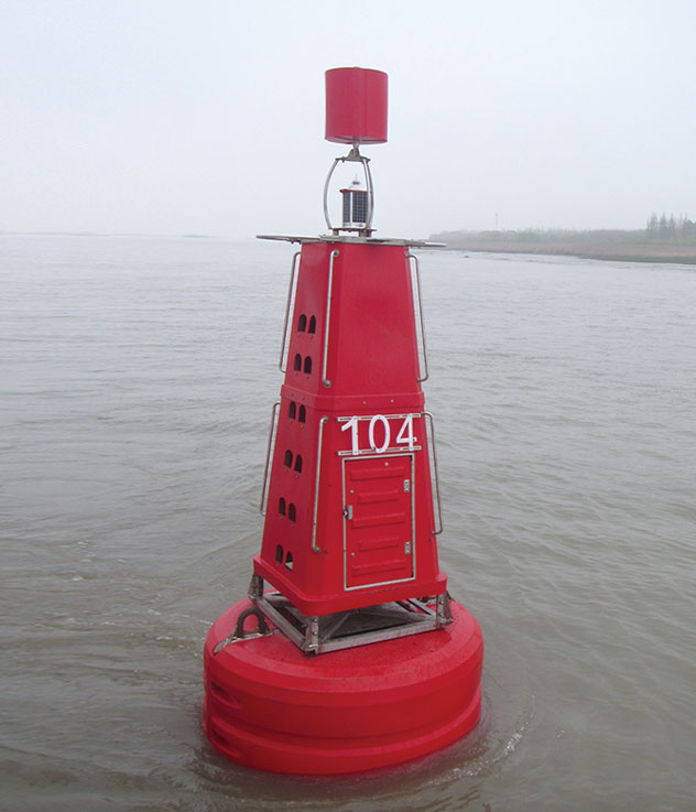 海豹240D型滚塑浮标采用316L不锈钢骨架与滚塑主体模块组合而成,适用于内河及港口的导助航浮标。