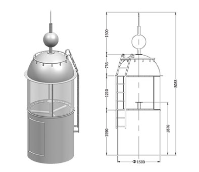 钢结构部分采用多级结构联接成圆柱形主体,也可根据用户需求进行设计、计算。根据安装现场、运输情况,可以整体交货,也可工厂预制,现场组装(组焊)灯笼底法兰与维修平台采用螺栓连接。灯笼具有强度高,耐腐蚀,稳定性好,安装方便,维护简单的特点,外观简洁大方,适用于各种工况、各种海域。