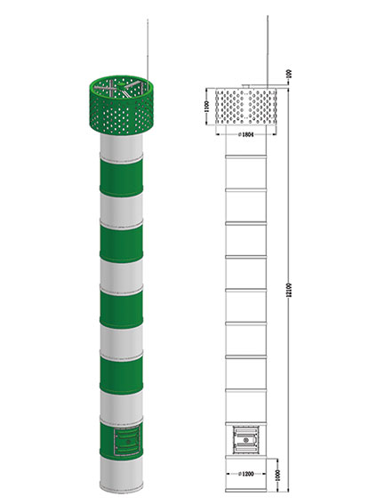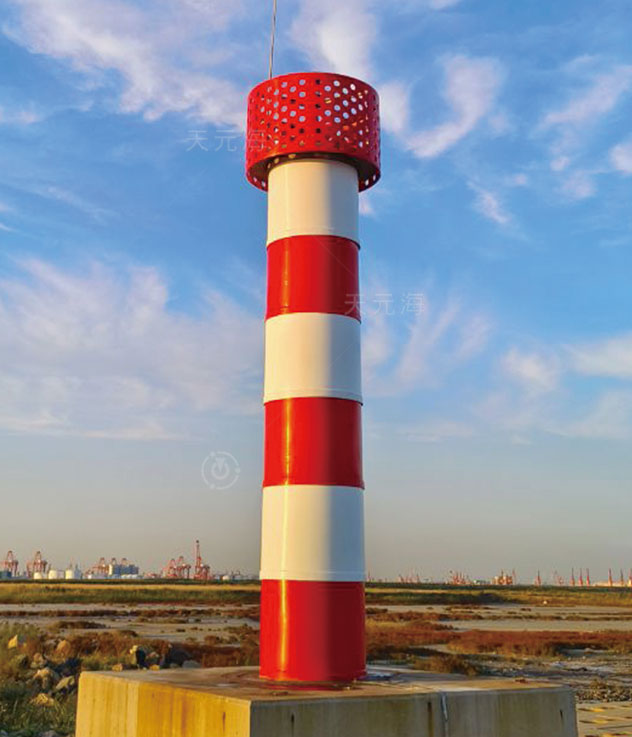 珊瑚系列滚塑灯桩是天元海公司自主研发的新型复合灯桩,由内部高强度钢骨架、外部滚塑筒体、维修平台、高显形护栏、爬梯、防盗门及避雷针等部分组成。结构坚固、可抗17级台风,并可承受海浪强烈拍击,广泛用于岛礁、岬角、港口、防波堤等各种恶劣环境。