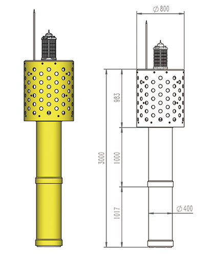 珊瑚系列滚塑灯桩是天元海公司自主研发的新型复合灯桩,由内部高强度钢骨架、外部滚塑筒体、维修平台、高显形护栏、外爬梯、避雷针等部分组成。结构坚固,可抗17级台风,并可承受海浪强烈拍击,广泛用于岛礁、岬角、港口、防波堤等各种恶劣环境。