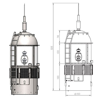 钢结构部分采用多级结构联接成圆柱形主体,也可根据用户需求进行设计、计算。根据安装现场、运输情况,可以整体交货,也可工厂预制,现场组装(组焊)灯笼底法兰与维修平台采用螺栓连接。灯笼具有强度高,耐腐蚀,稳定性好,安装方便,维护简单的特点,外观简洁大方,适用于各种工况、各种海域。