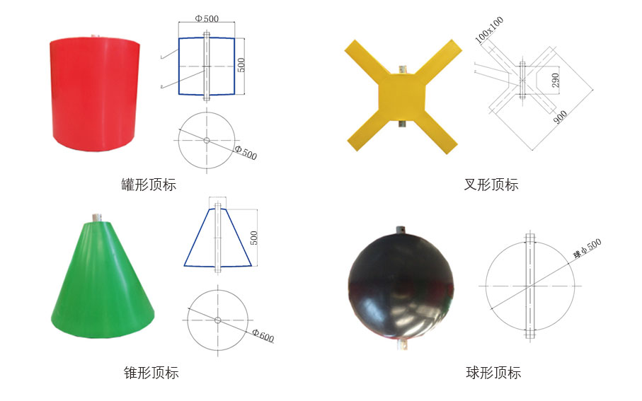 海鸥-A滚塑顶标系列涵盖红色罐形、绿色锥形、黄色叉形、黑色球形及黑色锥形等多种IALA标准浮标顶标。顶标主体采用线性低密度聚乙烯材料,支撑杆选用高强度6061太空铝一体滚塑成型,具备优异的目视效果、高抗UV性能、强抗冲击能力和良好的导风性。