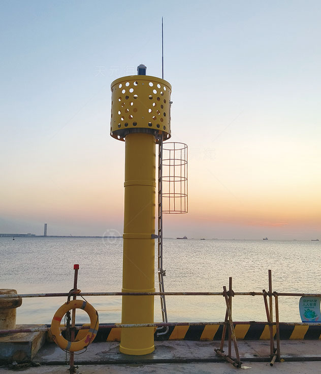珊瑚系列滚塑灯桩是天元海公司自主研发的新型复合灯桩,由内部高强度钢骨架、外部滚塑筒体、维修平台、高显形护栏、外爬梯、避雷针等部分组成。结构坚固、可抗17级台风,并可承受海浪强烈拍击,广泛用于岛礁、岬角、港口、防波堤等各种恶劣环境。