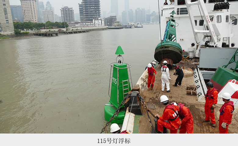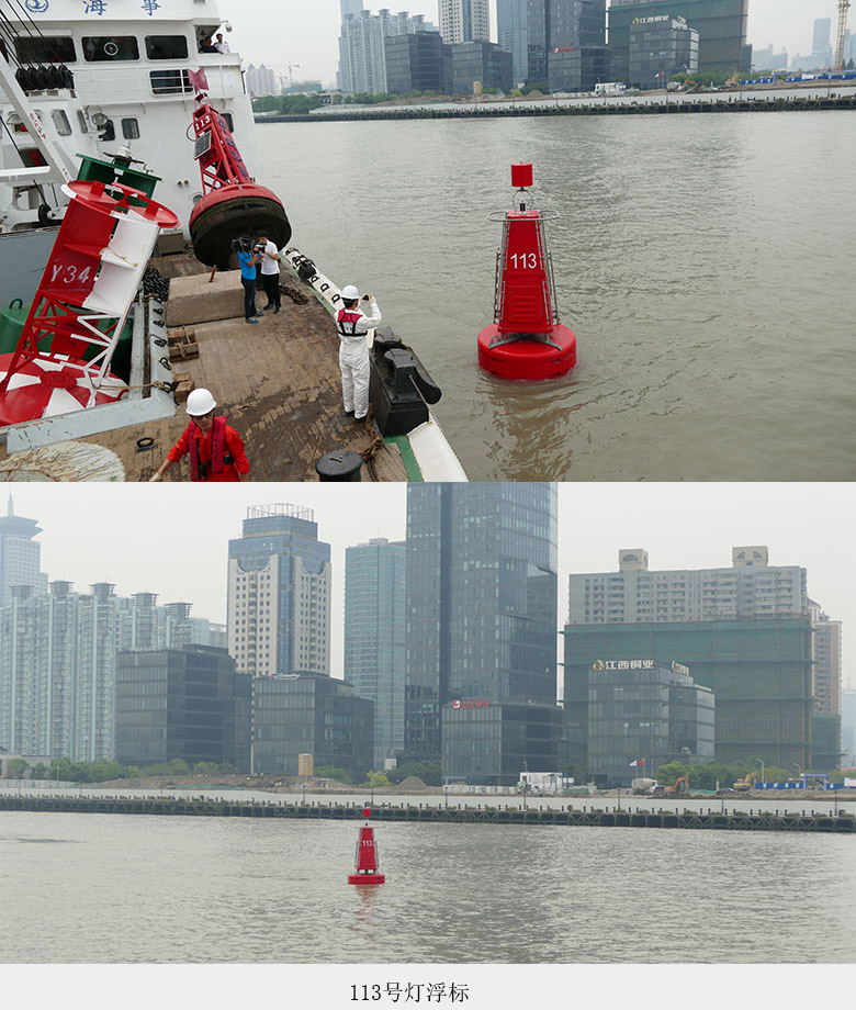 2017年6月1日上午9点时分,“海巡167”轮缓缓驶离朱家浜码头,穿过杨浦大桥,途经外滩,依次停靠在113、114、115号灯浮一侧,航标工作人员有条不紊的进行作业,随着115号灯浮平稳入水,黄浦江核心水域灯浮改造一期工程圆满完成。