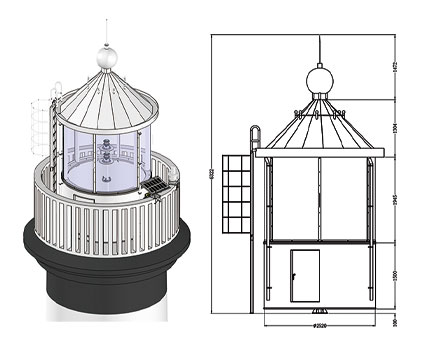 钢结构部分采用多级结构联接成圆柱形主体,也可根据用户需求进行设计、计算。根据安装现场、运输情况,可以整体交货,也可工厂预制,现场组装(组焊)灯笼底法兰与维修平台采用螺栓连接。灯笼具有强度高,耐腐蚀,稳定性好,安装方便,维护简单的特点,外观简洁大方,适用于各种工况、各种海域。