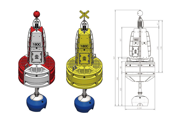 海豹180C型滚塑浮标采用316L不锈钢骨架与滚塑主体模块组合而成,适用于内河及港口的导助航浮标。