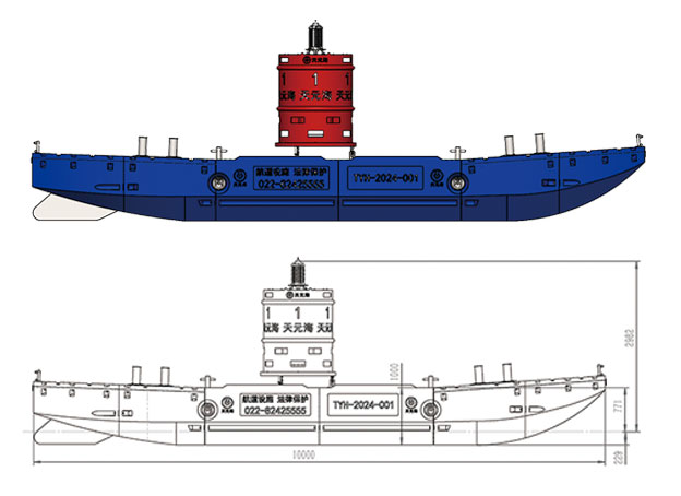 浮块采用线性低密度聚乙烯材料,成品颜色符合国标标准,经ASTM 2565标准20000小时UV老化测试后,色度坐标值仍保持在国标范围内。浮块设计为全密闭空心结构,使标志船有很好的承载能力,进一步增加了吸收撞击力的能力,减少了撞击导致的标志船损坏,保障了船上作业人员的安全。