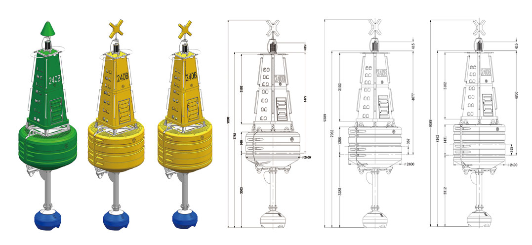 海豹240B型滚塑浮标采用316L不锈钢骨架与滚塑主体模块组合而成,适用于内河及港口的导助航浮标。