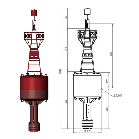 浮标由浮体(隔仓)、尾管、平衡铁和灯架构成。
