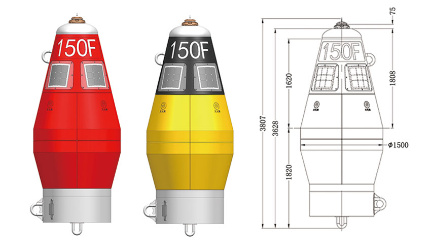 定海神针-150F型四季通用浮标主要由316L不锈钢骨架与滚塑主体模块组成,浮标采用流线型结构设计,浮标浮体外部无任何紧固螺栓,实现360°圆滑过渡,能兼备良好的导冰和目视性能,更能有效降低船只撞击时的受损程度,维护更加方便快捷,是一种高性能、低维保的四季通用灯浮标。