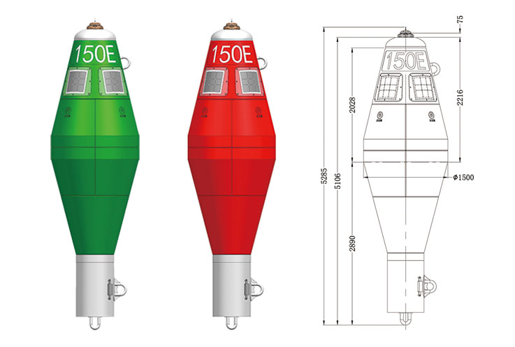 定海神针-150E型四季通用浮标主要由316L不锈钢骨架与滚塑主体模块组成,浮标采用流线型结构设计,浮标浮体外部无任何紧固螺栓,实现360°圆滑过渡,能兼备良好的导冰和目视性能,更能有效降低船只撞击时的受损程度,维护更加方便快捷,是一种高性能、低维保的四季通用灯浮标。