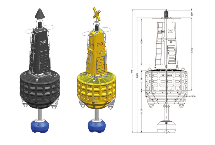 海豹240F型滚塑浮标主要由S30408不锈钢骨架与滚塑主体模块组成,可用作内河、港口的导助航浮标。