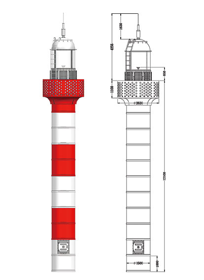 珊瑚系列滚塑灯桩是天元海公司自主研发的新型复合灯桩,由内部高强度钢骨架、外部滚塑筒体、维修平台、高显形护栏、爬梯、防盗门及避雷针等部分组成。结构坚固、可抗17级台风,并可承受海浪强烈拍击,广泛用于岛礁、岬角、港口、防波堤等各种恶劣环境。