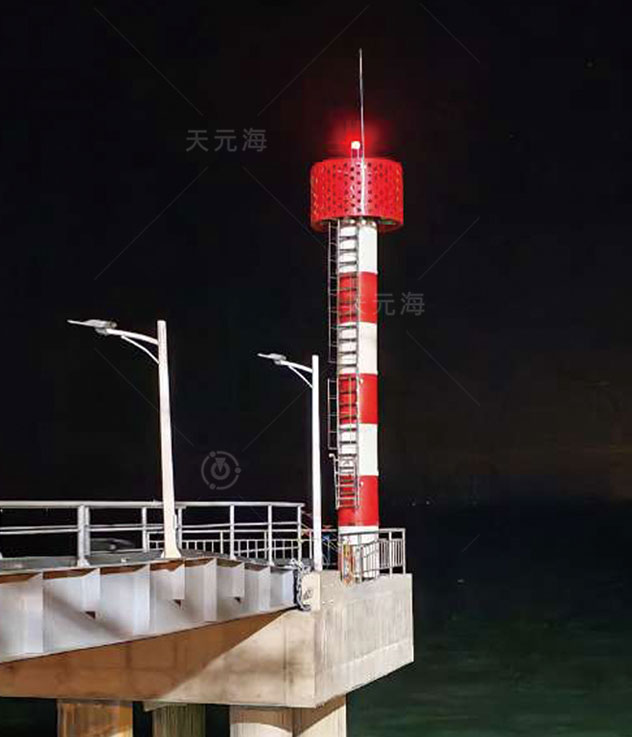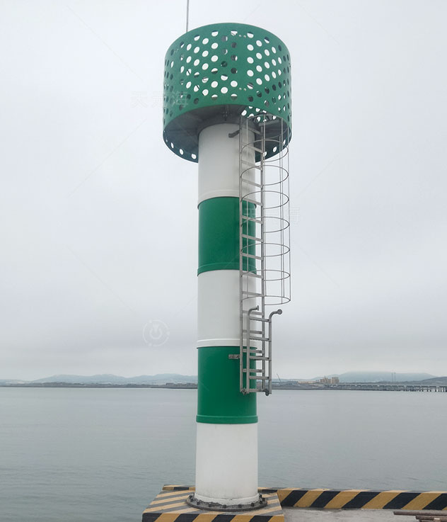 珊瑚系列滚塑灯桩是天元海公司自主研发的新型复合灯桩,由内部高强度钢骨架、外部滚塑筒体、维修平台、高显形护栏、外爬梯、避雷针等部分组成。结构坚固、可抗17级台风,并可承受海浪强烈拍击,广泛用于岛礁、岬角、港口、防波堤等各种恶劣环境。