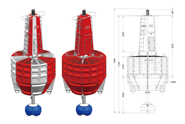 海豹300F型滚塑浮标主要由S30408不锈钢骨架与滚塑主体模块组成,可用作内河、港口的导助航浮标。