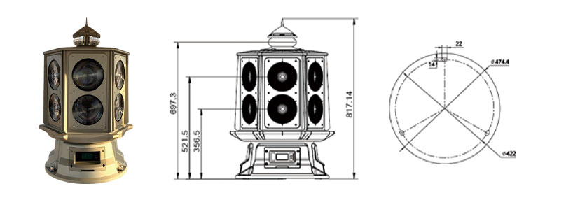 超远射程:6面高光效LED光源,最大作用距离超过22海里,射程可调,完美适配一、二级灯塔需求。